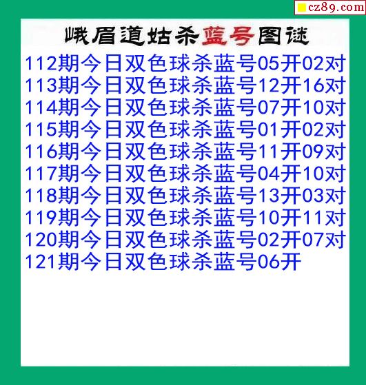 峨眉道姑杀蓝号121期双色球图谜