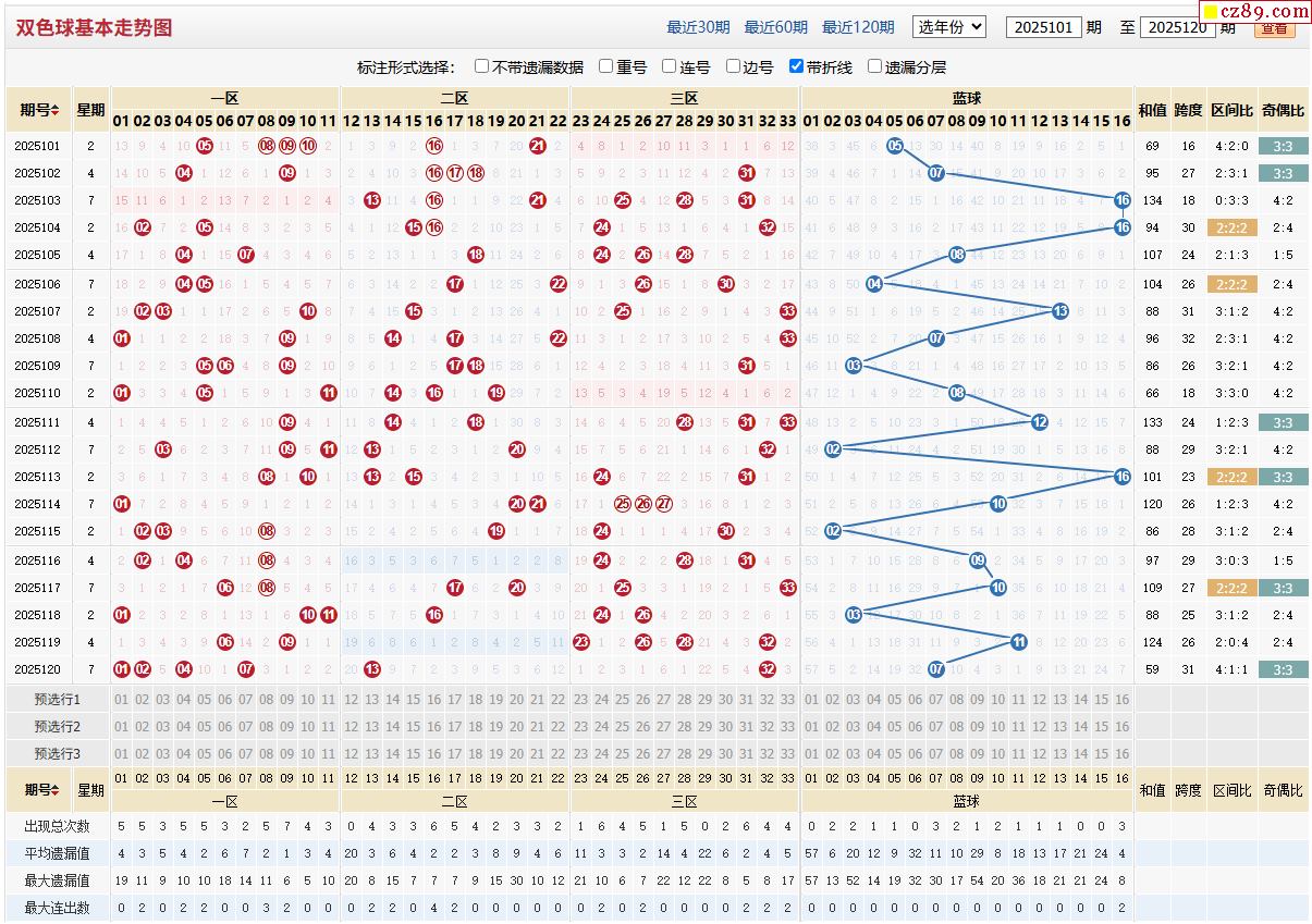 双色球121期 彩宝贝专家红蓝球杀号预测图表