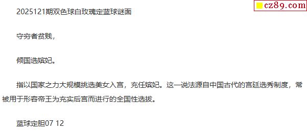 > 25年福彩双色球121期 白玫瑰定蓝球字谜